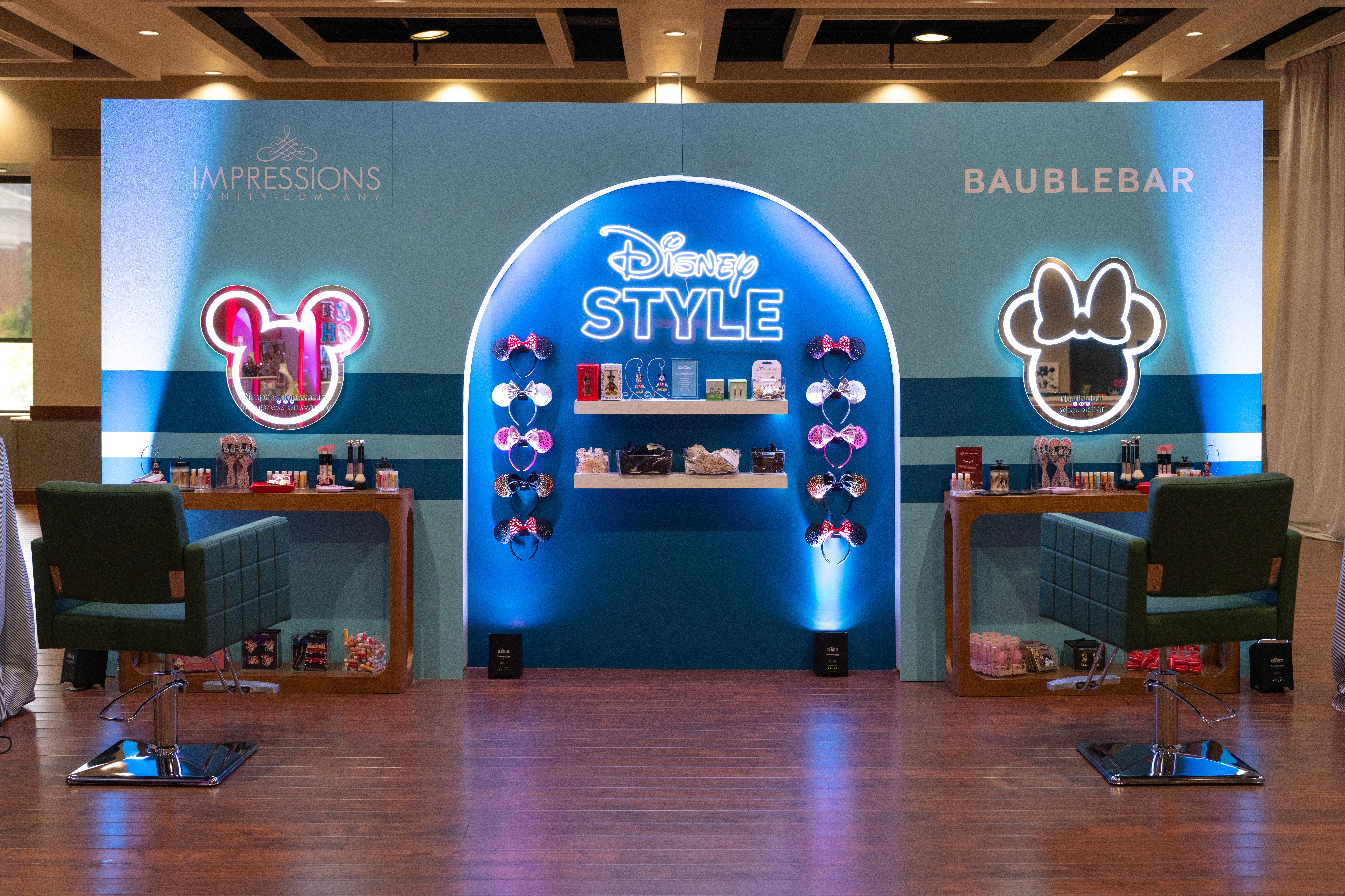 Assembli transformed the ballroom of the Alabama Student Center into an interactive "Get Ready" activation featuring multiple brand partners in a unique "Mickey goes to college" themed environment. Custom-fabricated walls were produced, each dedicated to a different aspect of the get-ready process, including wardrobe, hair/makeup, and accessories.