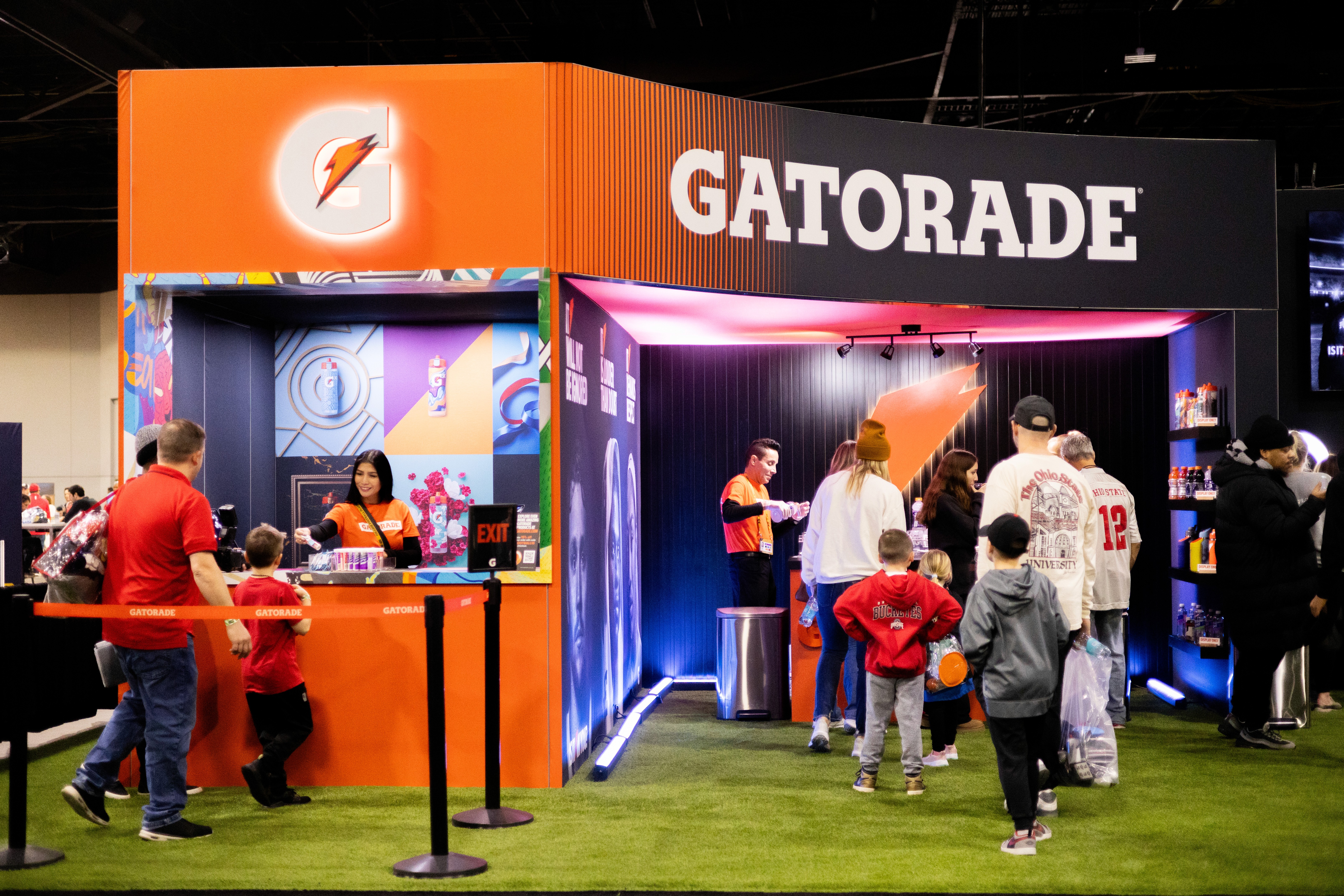 In Houston, the focus was on re-energizing the event and driving deeper engagement. Assembli reimagined the footprint around a large-scale CFP field that became an iconic focal point, with a dramatic LED tunnel pulling guests into the space and a layout designed to increase dwell time and sponsor interaction.